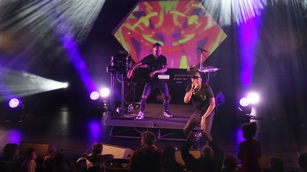 Le son est très puissant et le duo composé de Docteur Kanay et Docteur Krilong triture ses boutons et ses bandes pour extraire de son laboratoire scénique des sonorités qui mettent l’assistance en transe…