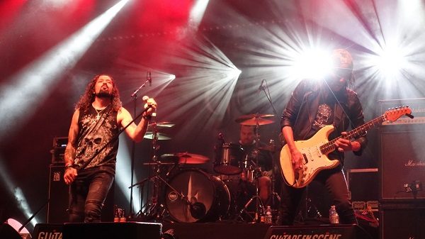 Mais la soirée n’est pas finie. Bernie Marsden n’ayant pu venir comme prévu à cette édition pour raisons de santé, ce sont les Suisses de Gotus qui le remplacent et c’est une excellente nouvelle qui me console un peu de l’absence du guitariste historique de Whitesnake. Composé de la section rythmique de Krokus : Tony Castell à la basse et Pat Aeby à la basse, de Alain Guy aux claviers (digne successeur de Don Airey !), Gotus est avant tout le nouveau projet de Mandy Meyer qu’on a connu avec Krokus mais aussi avec Gotthard ou Unisonic entre autres. Et puis à l’origine il y avait aussi Dino Jelusick au chant qu’on a vu 2 jours auparavant pour la Jam GES et qui reviendra à la fin du Set de Gotus pour un « Rockin’ In The Free World » d’anthologie. Le nouveau chanteur du groupe helvétique se trouve être, excusez du peu, le grand Ronnie Romero ! Pour l’avoir vu un mois auparavant un peu frustré et distant avec Michael Schenker au Hellfest, je peux dire sans hésiter qu’avec les Suisses, il s’éclate vraiment et se sent hyper à l’aise sur scène. On aura droit à une Setlist composée de beaucoup de Gotthard, un peu de Krokus et d’autres groupes ayant émaillé la prolifique carrière de Mandy qui est la véritable Star de Gotus. Même si beaucoup de monde a quitté l’enceinte du festival après Scorpions, ceux qui sont restés ont eu raison de le faire car on a assisté à un grand moment de Hard Rock avec ces musiciens exceptionnels…