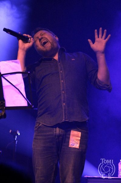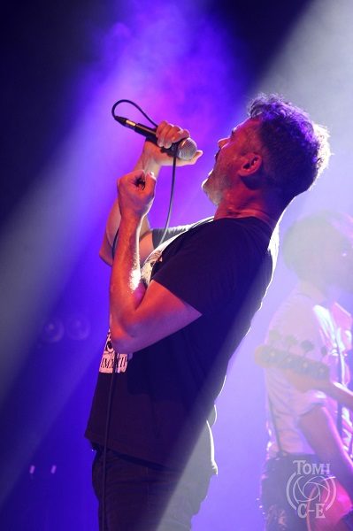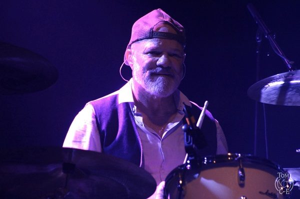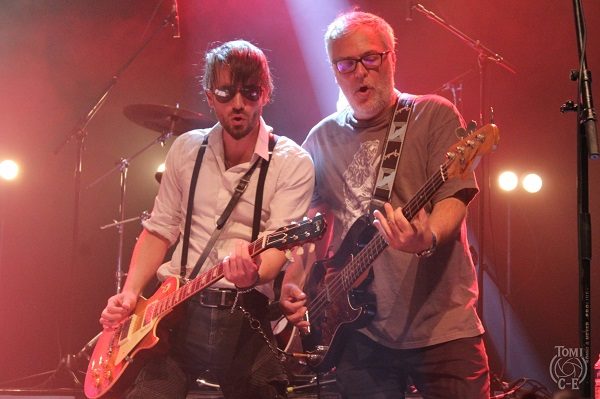 Il faut dire que le guitariste de F.F.F. sait s’y prendre pour entraîner la foule, souvenir de ses années aux côtés de notre Johnny national… L’heure du Slow qui tue a maintenant sonné et c’est le célèbre « Under The Bridge » des R.H.C.P. qui résonne dans les enceintes. Roddy en délivre une version tout en finesse qui fait chavirer la salle. Beaucoup de dérision ensuite avec la venue du chanteur humoristique Oldelaf qui a ajouté un texte créé de toutes pièces et de circonstance au tube des Buggles « Video Killed A Radio Star ». Il y fait allusion à la carrière gastronomique d’Etchebest pour le plus grand plaisir de celui-ci et de ses aficionados. Un bon moment de franche rigolade ! « Under Pressure » de Bowie/Queen déboule maintenant pour notre plus grand plaisir d’autant que le version proposée n’a rien à envier à l’originale tant ça Groove sur scène. Yarol revient auprès de ses camarades pour un « La Grange » des barbus les plus célèbres de la planète tout à fait revigorant avant un plus calme « Comfortably Numb » dans une version là encore écourtée mais néanmoins très émouvante d’autant que Philippe vient nous en chanter l’intro sur le devant de la scène avant de rejoindre sa batterie.