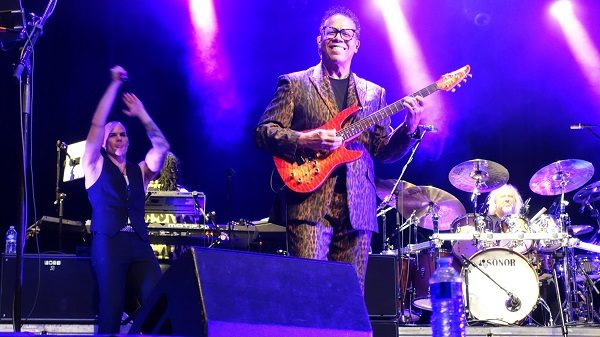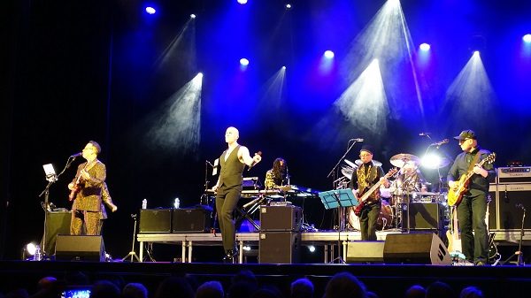 Alomar a été le musicien qui est resté avec David le plus longtemps puisqu’il a joué sur 11 albums, de « Young Americans » en 1975 à « Reality » en 2003. Il est également présent sur « The Idiot » et « Lust For Life » d’Iggy Pop et a collaboré avec une multitude d’autres artistes. Murray a participé à « Young Americans » en 1976 et est resté jusqu’en 1980 pour « Scary Monsters ». Quant à Davis on le retrouve sur les mêmes albums que Murray. Il a aussi joué avec Roy Ayers, George Benson et Stevie Wonder entre autres. Il est malheureusement décédé en 2016 et cette tournée du D.A.M. Trio (dont il est le « D ») lui sera dédiée ainsi qu’à David qui nous a quittés la même année. Davis est remplacé par l’excellent Tal Bergman, avec son Look très 70’s, qu’on a pu voir aux côtés de Billy Idol, Rod Stewart ou Chaka Khan. Le guitariste soliste n’est autre que Kevin Armstrong qui a accompagné Bowie au Live Aid en 1985 mais aussi Iggy et qui a participé au lancement de Tin Machine, le Side-Project de David. Aux chœurs et aux machines c’est la propre fille de Carlos qui officie : Lea Lorien. Et comme tout se fait « en famille » c’est le mari de Lea qui est aux claviers : Axel Tosca. Quant au chant c’est Michael Cunio qui a la lourde tâche d’incarner Bowie.