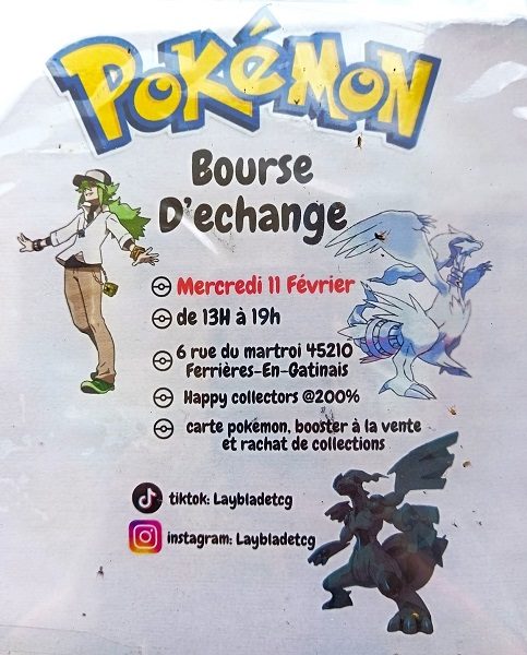 Bonjour, nous avons le plaisir de vous inviter à notre Bourse d’échange, un événement incontournable pour tous les passionnés de cartes Pokémon et… Heureux collectionneurs !