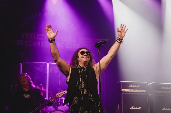 Mais c’est maintenant au tour du grand Michael de venir nous combler avec un Best Of d’U.F.O. d’autant plus apprécié que Phil Mogg a mis fin au groupe original il y a maintenant quelques années. Coiffé de sa traditionnelle Chapka, il est entouré de R.D. Liapakis au chant donc, de Barend Courbois à la basse et des fidèles Bodo Schopf à la batterie et Steve Mann aux claviers/guitares additionnelles. On attaque avec le Heavy « Natural Thing » bien connu des fans du groupe londonien tout comme le « Only You Can Rock Me » qui lui succède. Pour être honnête, la voix de Liapakis, tout comme celle de Grönwall l’année dernière, ne me semble pas forcément la plus adaptée à ce répertoire car très éloignée de celle de Mogg et surtout beaucoup moins « chaude » et Bluesy. Il est certain néanmoins que j’avais préféré la prestation de l’ex-H.E.A.T. derrière le micro car sa tessiture est beaucoup plus étendue selon moi que celle du vocaliste de Mystic Prophecy. R.D. sonne très années 80 et surtout toujours pareil et je dois avouer que je l’ai trouvé nettement moins intégré dans le groupe de Michael que ne l’était Erik, comme s’il était simplement en intérim au sein du combo. Il faut dire qu’on commence à être habitué à la valse des chanteurs auprès de Mr Schenker, de Gary Barden à Ronnie Romero en passant par Graham Bonnet, Robin McAuley, Leif Sundin, Chris Logan, Doogie White et tous les autres qui n’ont fait que passer !