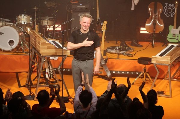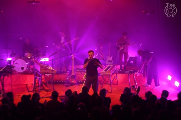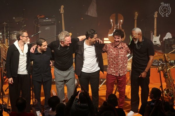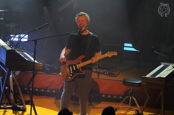 Il joue alternativement des claviers, de la guitare , de la basse et est accompagné de 5 formidables musiciens qui s’occupent des saxos (et des voix additionnelles), des synthés, de la batterie, de la basse et des guitares additionnelles.
