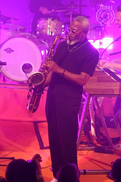 Un sextet donc pour un Show avec un son parfait et des lumières plutôt réussies même si parfois un peu trop stroboscopiques à mon goût. Le style est résolument Funk, lorgnant souvent vers Prince ou Sly Stone. Mathieu communique pas mal avec le public et délivre un message positif et tourné vers l’avenir.