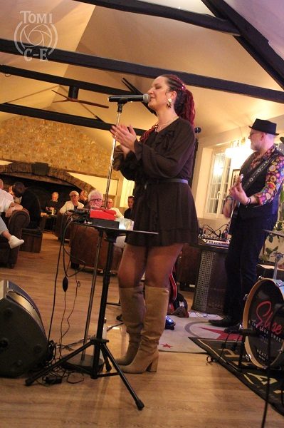 Les 5 musiciens commencent leur Set à 20h45. Pas forcément facile de jouer devant un public assis et qui est en train de savourer les délicieuses planches proposées au menu mais Yulia sait comment se mettre l’assistance dans la poche. Elle n’hésitera d’ailleurs pas tout au long de la soirée à aller au plus près des spectateurs. Pour sa Setlist, le quintet va piocher dans son excellent dernier album « Horosho » (2022) mais aussi dans ses 2 opus précédents et va même nous proposer quelques nouveautés qui vont sortir en Single dans les semaines à venir. On commence en douceur avec « Rough Waters » et « Galaxy » suivis d’une très belle reprise de Vintage Trouble « Nobody Told Me ». On monte en puissance avec « In The Shadow Of Your Wings » qui ouvre « Horosho » et encore un peu plus avec « I’m Gonna Cramp Your Style », reprise de Junior Wells présente sur le premier EP de E&TS « When The Whistle Blows », du temps où Elise Heyte en était la chanteuse originelle. Elle l’était également sur le second opus « It Can’t Go Wrong » dont l’extrait « Thinking About The Good Time » déboule maintenant avec un très beau solo d’Olivier Raymond. L’ambiance se veut ensuite plus feutrée avec un sublime et langoureux « Stolen Sun » magnifié par la voix de Yulia.