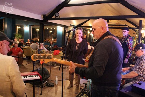 Nouvelle reprise, de Muddy Magnolias cette fois, avec le très Soul et apprécié « It Ain’t Easy ». Retour au Blues Rock avec « I’m On Fire » qui voit l’orgue de Bala et la guitare d’Olivier venir nous caresser les esgourdes. La batterie de Bob et la basse de Sébastien apportent au tout un Groove redoutable. La grande Etta James est maintenant à l’honneur avec le très Gospel « Something’s Got A Hold On Me » qui pousse quelques intrépides à se risquer à quelques pas de danse dans les travées de la salle. Idem pour « Won’t Be Long » du répertoire d’Aretha Franklin qui part sur les chapeaux de roue pour une prestation haute en couleur. Première nouveauté du Set, « Ain’t Got Nothing », s’annonce comme un futur favori du répertoire du combo et tout le public s’accorde à dire qu’il faut impérativement le sortir en Single.