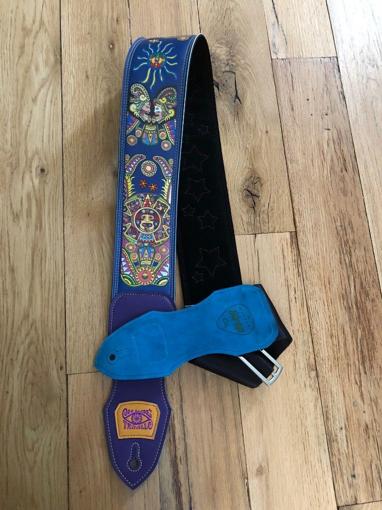 Chloé Trujillo (Designer, Styliste, Peintre de grand talent), la charmante femme de Robert Trujillo (Metallica), vous propose de nouvelles créations de sangles de guitares/basses en collaboration avec The Guitar Strap Co’